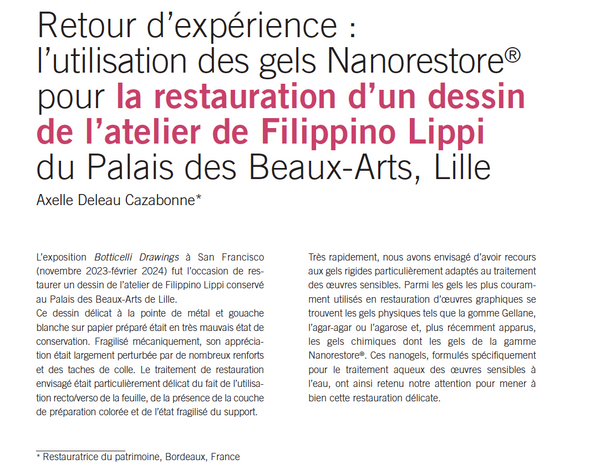 Retour d’expérience : l’utilisation des gels Nanorestore® pour la restauration d’un dessin de l’atelier de Filippino Lippi du Palais des Beaux-Arts, Lille