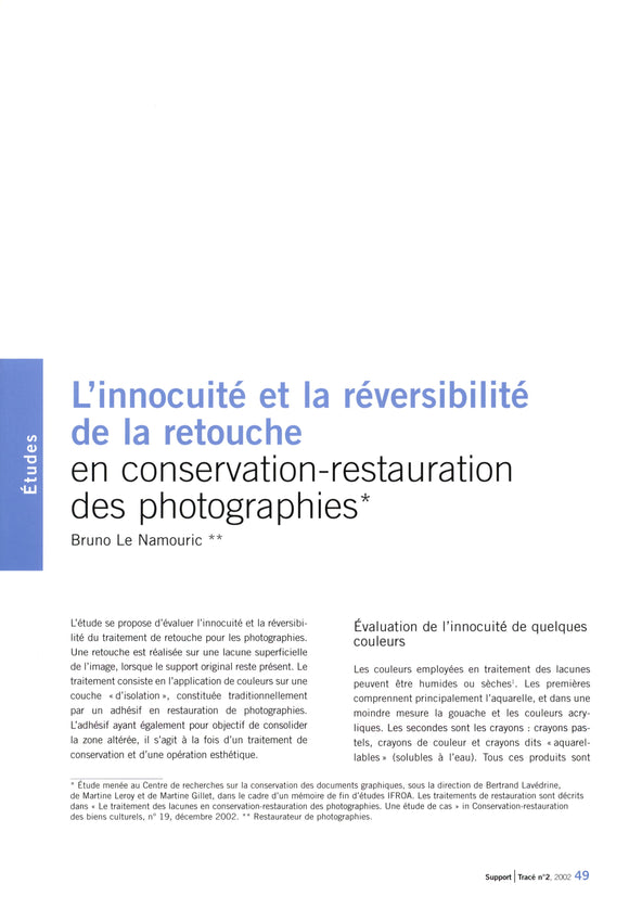 L’innocuité et la réversibilité de la retouche en conservation-restauration des photographies