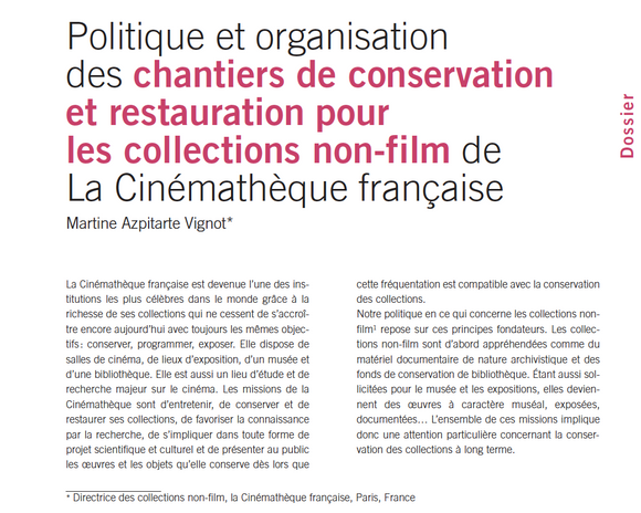 Politique et organisation des chantiers de conservation et restauration pour les collections non-film de La Cinémathèque française