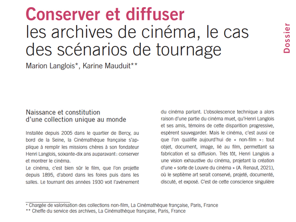 Conserver et diffuser les archives de cinéma, le cas des scénarios de tournage