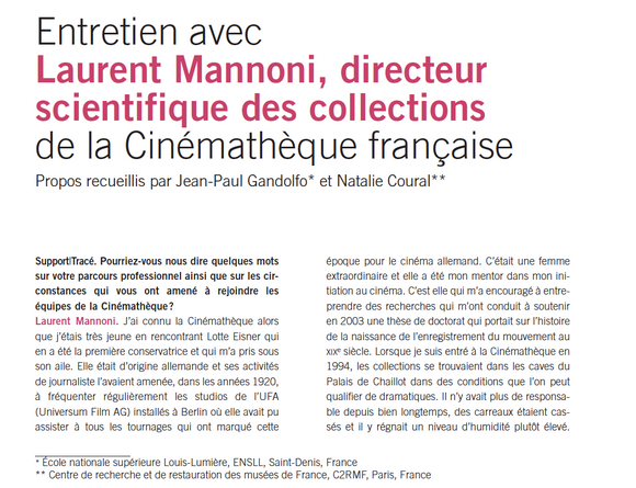 Entretien avec Laurent Mannoni, directeur scientifique des collections de la Cinémathèque française