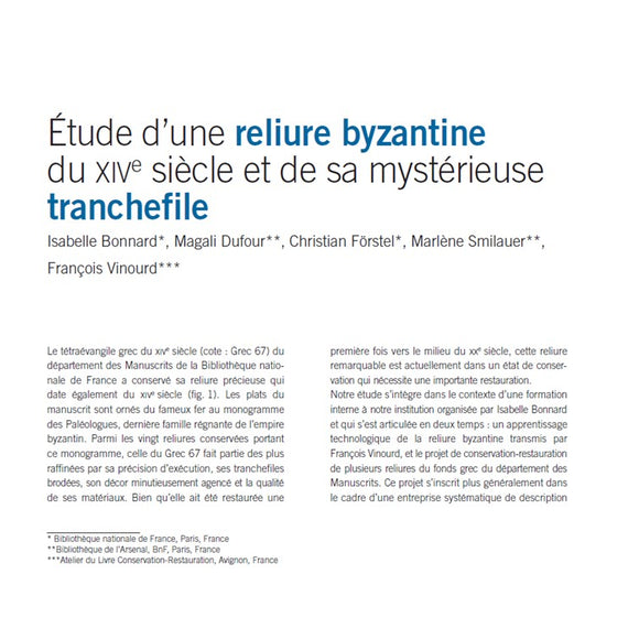 Étude d’une reliure byzantine du XIVe siècle et de sa mystérieuse tranchefile