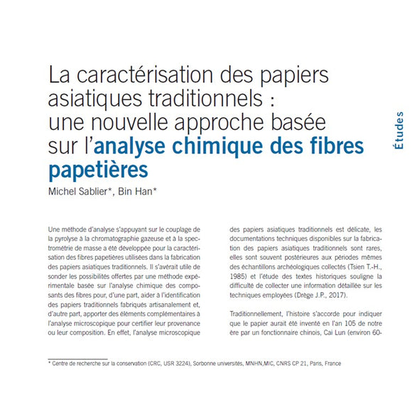 La caractérisation des papiers asiatiques traditionnels : une nouvelle approche basée sur l’analyse chimique des fibres papetières