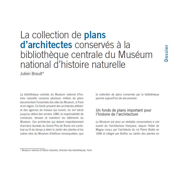 La collection de plans d'architectes conservée à la bibliothèque centrale du Muséum national d'Histoire naturelle