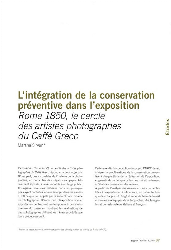 L’intégration de la conservation préventive dans l’exposition Rome 1850, le cercle des artistes photographes du Caffè Greco