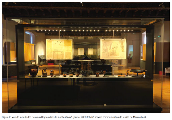 Montauban, cité natale d’Ingres, a accueilli la quasi-totalité du fonds d’atelier de l’artiste, ce qui en fait un ensemble unique au monde {...}. Il est conservé depuis son origine dans l’ancien palais épiscopal de la ville, devenu hôtel de ville en 1791. {...} Aujourd’hui classé aux Monuments historiques, ce bâtiment est à la fois l’écrin majestueux des dessins d’Ingres dont il conserve la plus grande collection au monde et le signal emblématique du panorama urbain sur le Tarn. La ville de Montauban, consciente de la qualité exceptionnelle de ce patrimoine, a souhaité que soit menée une rénovation muséale d’envergure {...}. Au coeur de cette rénovation, un soin particulier a été accordé à la présentation des dessins d’Ingres qui font la richesse et la fierté de la ville grâce à l’arrivée puis à la conservation de tout ce que contenait son atelier, justifiant pleinement le nom et la renommée du musée montalbanais. Car c’est avec ces innombrables études qu’on peut le mieux percevoir le processus créatif de l’artiste. Il était normal que la présentation et la conservation de cet ensemble requièrent une importante réflexion pour traduire la richesse du fonds et son abondance tout en respectant les nécessaires rotations destinées à le protéger de la lumière.
