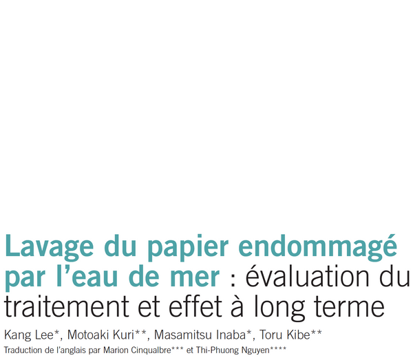 Lavage du papier endommagé par l’eau de mer : évaluation du traitement et effet à long terme