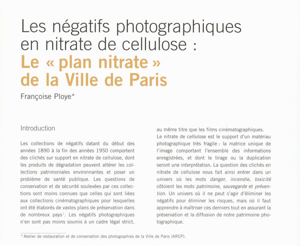 Les négatifs photographiques en nitrate de cellulose : Le « plan nitrate » de la Ville de Paris
