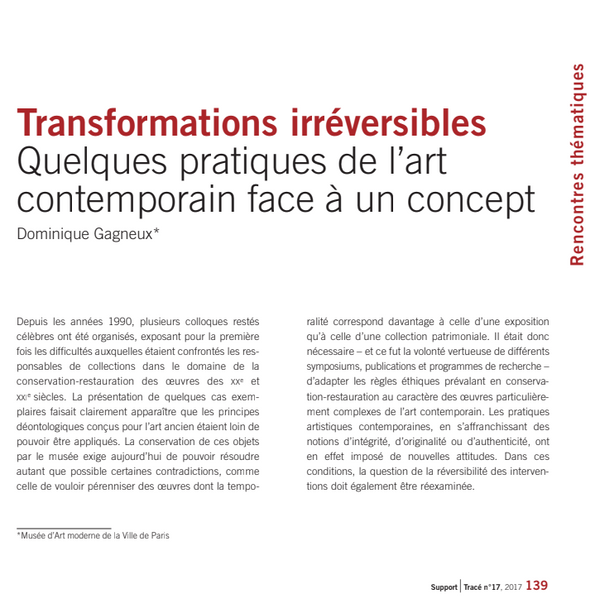 Transformations irréversibles Quelques pratiques de l’art contemporain face à un concept